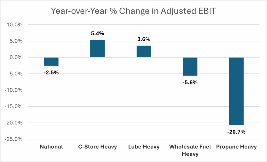 These gains translated into gross profit dollar growth of 10.3% year-over-year, the strongest of any segment. Adjusted EBIT grew by 3.6%, keeping Lube Heavy Firms among only two segments (alongside C-Store Heavy Firms) to show any improvement. Despite these gains, Lube Heavy Firms’ ROCE still fell by 1.1 percentage points, the second-mildest decline but a decline, nonetheless.